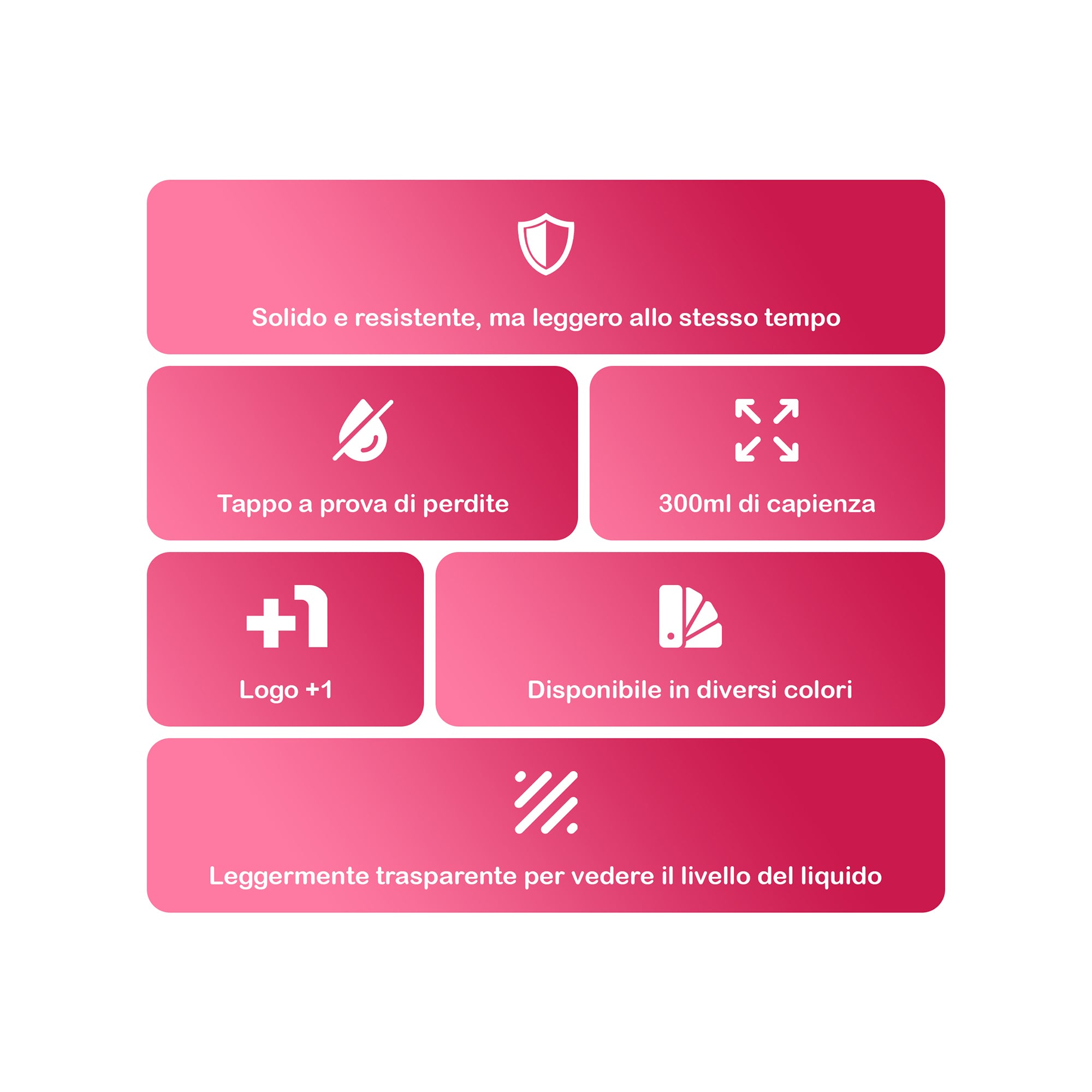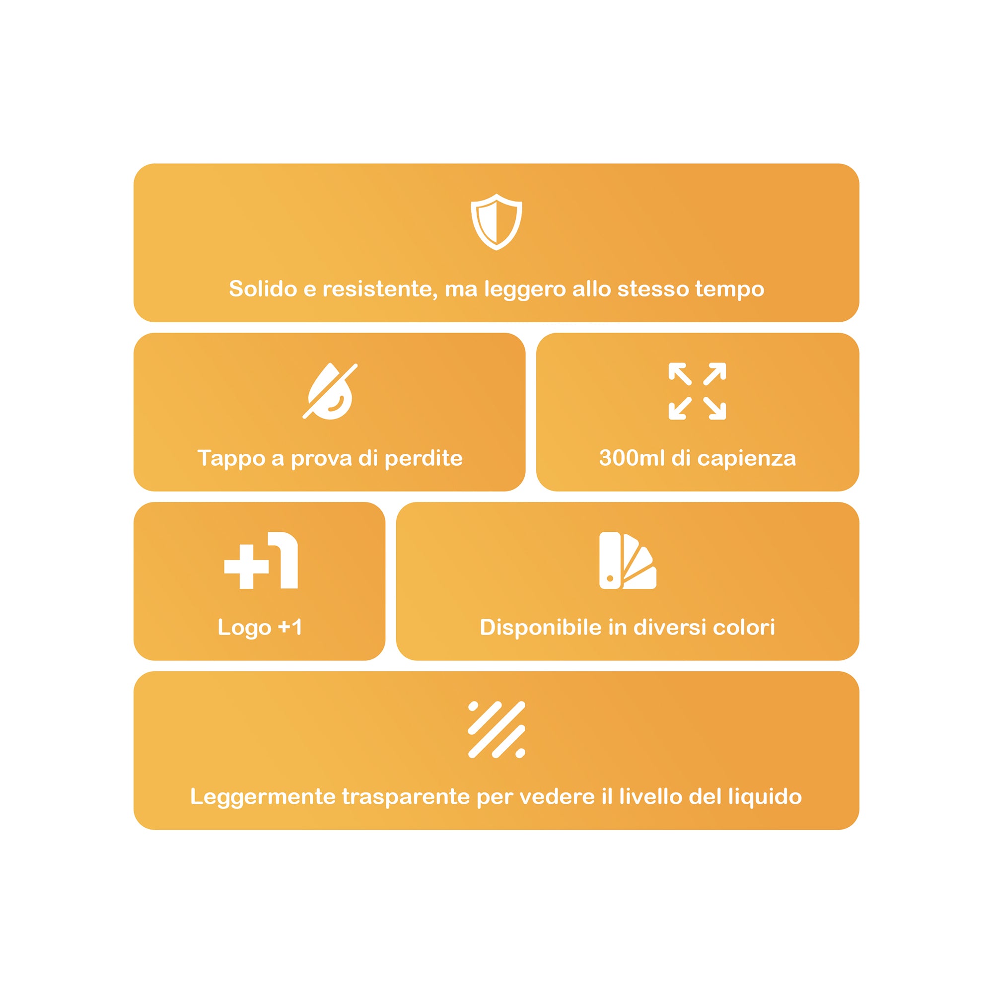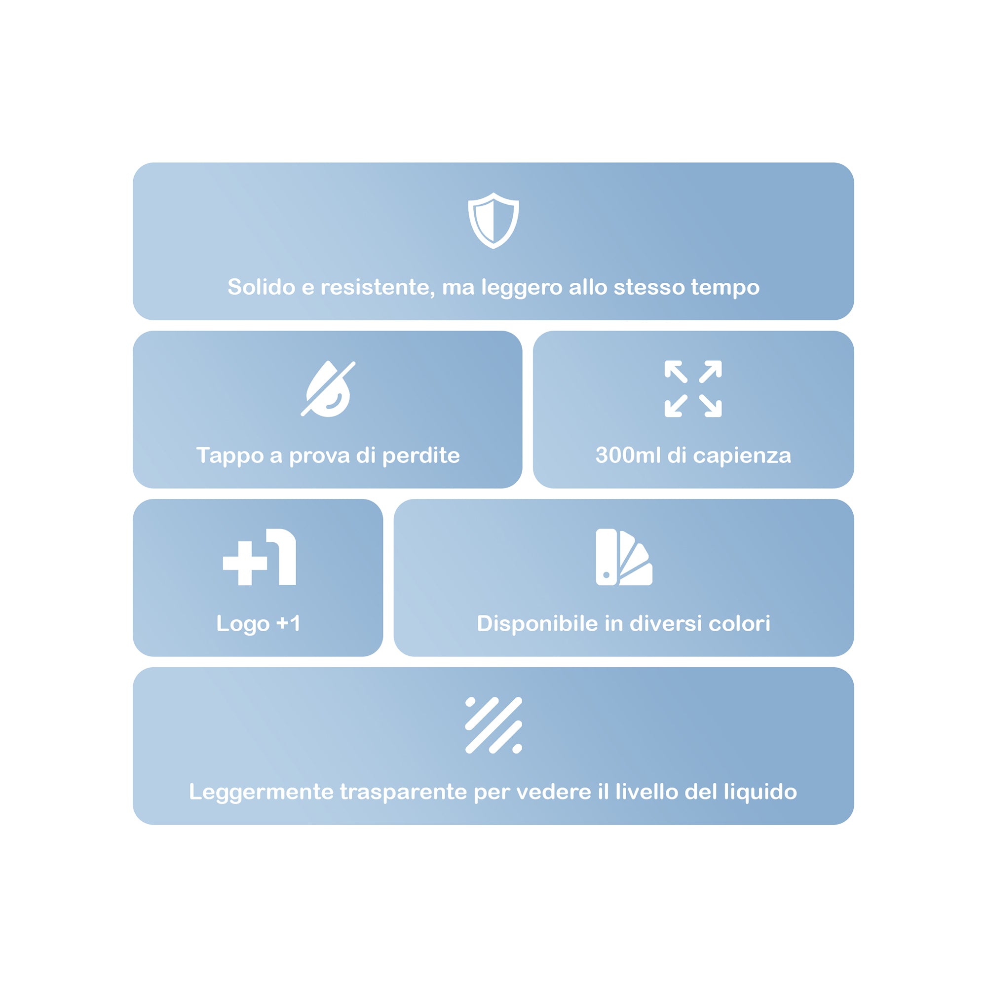 Mini Color Pop Shaker Bottle per una miscelazione perfetta e uno stile inconfondibile. Lo shaker ideale per chi cerca praticità, resistenza e cura nei dettagli, ma senza rinunciare alla leggerezza. Realizzato con materiali resistenti ma al tempo stesso leggeri, offre la massima affidabilità in ogni utilizzo. Il tappo a prova di perdite garantisce una chiusura sicura, mentre la capienza da 300ml è perfetta per preparare le tue bevande in modo rapido e uniforme. Leggermente trasparente per controllare facilmente il livello del liquido, combina funzionalità e design in un formato versatile e moderno. Il logo +1 rende il design pulito e riconoscibile, e la disponibilità in diversi colori consente di scegliere la versione più adatta al proprio stile. Perfetto da portare con te dentro e fuori dalla palestra, rappresenta una soluzione pratica, resistente e di qualità per accompagnarti in ogni momento della giornata.